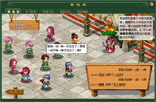 在聚魂塔里,可以挑戰(zhàn)他人魂魄,只要?jiǎng)倮,就能夠攝取他人的魂魄。