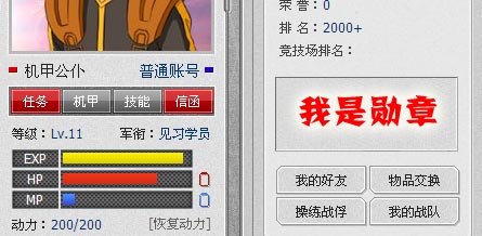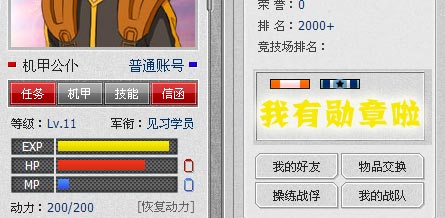 3、本勛章同樣出自于《機(jī)甲戰(zhàn)爭》美工MM之手,所不同的是,在機(jī)戰(zhàn)世界本勛章的含金量基本等同于“奧運(yùn)冠軍”獎(jiǎng)牌,擁有他,是王者的象征,擁有他,您同時(shí)享受了“神”的待遇。