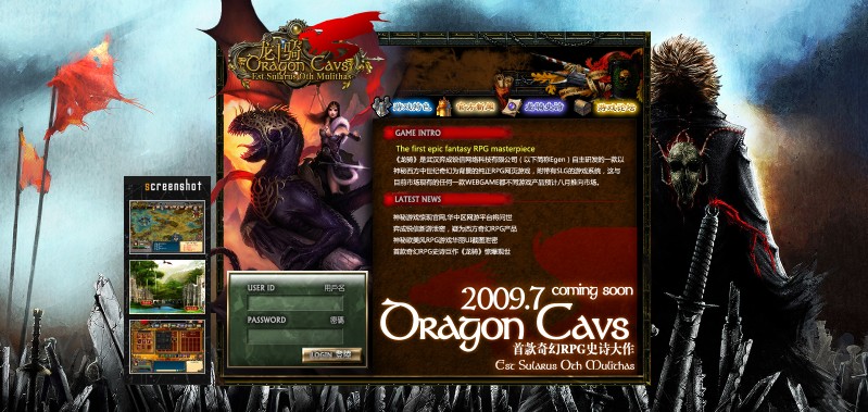 《龍騎》的官網(wǎng)風(fēng)格華麗而又有中世紀(jì)的暗黑感,背景畫面:破裂的兵刃、沉重的灰色石柱、殘破的戰(zhàn)旗、背對(duì)觀者的男子,顯示出視覺色彩帶來重量感,而為觀者的整體視覺感受帶來悲壯的雖千萬人吾往已的氣勢。