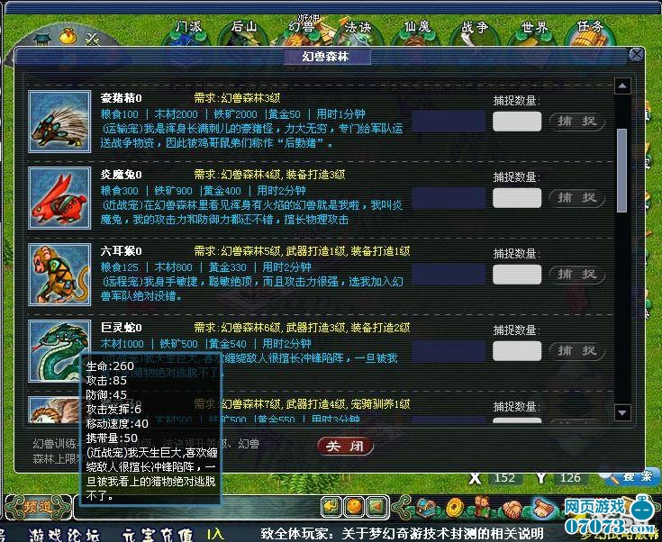 3.建設幻獸森林和修煉院及研究法訣,這是初期發(fā)展的重點,目的就是滿足造兵條件,生產(chǎn)幻獸。