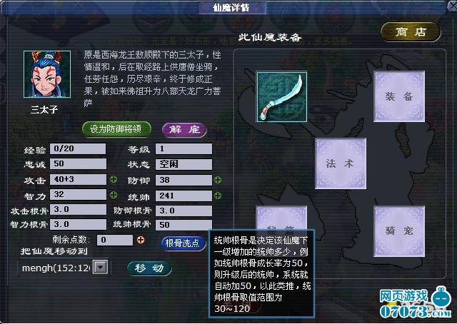 1.建設仙魔臺級不必高,越低招仙魔越便宜,就是麻煩些,招了解解了招,直到招到滿意的為止,推薦仙魔單攻600+,例如神族有變異天魔(極難)、變異白起(困難)、變異型天(很難)、百變魔神(困難)等等,擴號內(nèi)顯示能招到機率,初期金錢不夠也沒人品爆發(fā)總招不到怎么辦,招個攻400統(tǒng)帥高些的先用起來一樣可以,然后洗點過渡XM攻和統(tǒng)帥洗到10點幾和100出頭就可以了。