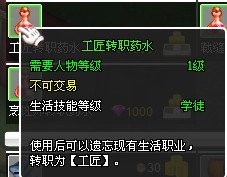 等級到達10級以上,10級以下的主線任務(wù)必須全部做完,才能在“新手指導員”或任務(wù)菜單“顯示可接任務(wù)”處接到轉(zhuǎn)職任務(wù),轉(zhuǎn)職后既可學習相應(yīng)的生活技能。2、轉(zhuǎn)職藥水: