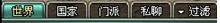我們可以看到在聊天界面里面可以分為四類:世界聊天、國(guó)家聊天、門派聊天、私聊。點(diǎn)擊相應(yīng)的聊天對(duì)象就可以看到相應(yīng)的聊天內(nèi)容。聊天系統(tǒng)有很麻煩的地方,就是點(diǎn)擊這里