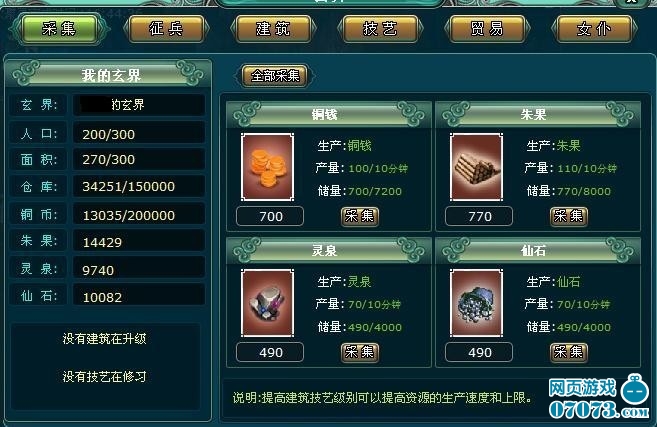 (1)可以通過 『玄界』-采集 點(diǎn)擊“全部采集”就可以獲得大部分資源。如下圖