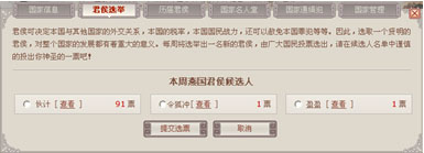 你可以參加君侯選舉,選舉獲勝可以管理國家一周,受到所有同胞的尊敬。君侯決定與他國的外交關(guān)系(結(jié)盟、中立、敵對)率領(lǐng)你的子民了國家的榮譽(yù)而戰(zhàn)吧!