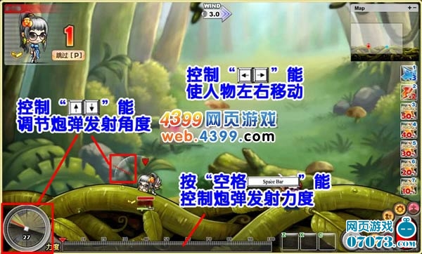 “空格”:控制炮彈發(fā)射的力度,按住空格的時(shí)間越久,炮彈發(fā)射的距離越遠(yuǎn)。在最下面的“力度”刻度條,會(huì)顯示當(dāng)前空格操作所產(chǎn)生的力度。