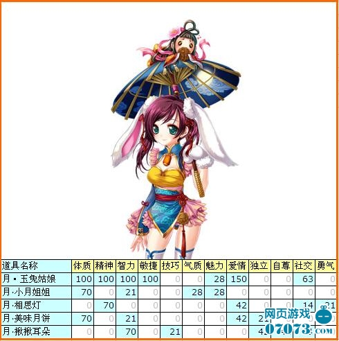 LV3等級玉兔裝配飾全套——小月姐姐LV3×1、相思燈LV3×1、美味月餅LV3×1、揪揪耳朵LV3×1