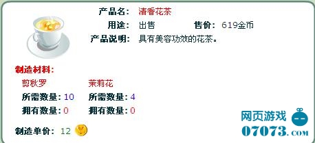 本文以清香花茶為例介紹千橡開心網(wǎng)陽光牧場制造屋配方的使用方法: