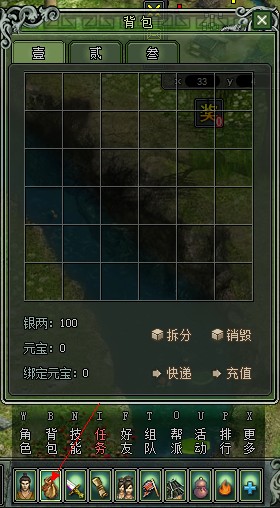 讓我們來看看武林爭霸的背包系統(tǒng)吧,快捷鍵為“B”鍵,也可以按游戲右下方的那個小包包圖標直接打開。