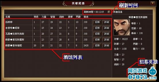 酒館中每隔半小時(shí)就會(huì)刷新一個(gè)新的英雄供玩家選擇。