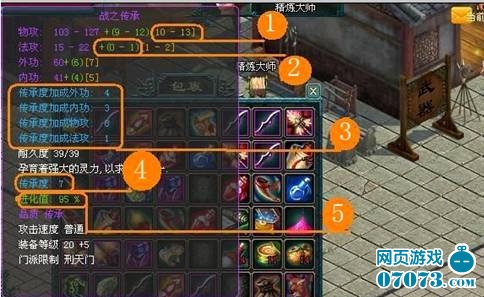 當玩家二十級時,會在門派掌門那里獲得一把屬于自己的傳承武器,這把武器不可交易,并將可以終身陪伴你,跟著你一起成長變強,也許不經(jīng)意間,它會成為一把神器。傳承武器的重要屬性有傳承度,進化值,裝備等級。