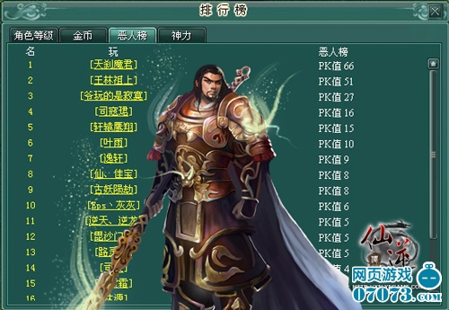 而惡人榜第二名得玩家(PK值51),以“王林祖上”這個囧囧有神的名字耀人眼球,乃是號稱近戰(zhàn)無敵的神修。而被第三名“爺玩的是寂寞”,更是完美的將“寂寞論”添加到自己的名字中,以PK值27展現(xiàn)一代妖修的紫色魅影。