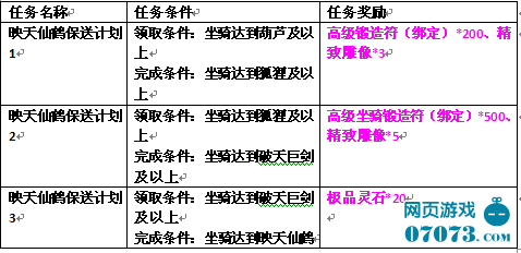 活動開啟后,玩家可以在天水城npc—晚鳳處領(lǐng)取任務(wù)——映天仙鶴保送計劃,完成任務(wù)后將會獲得對應(yīng)獎勵。具體情況如下: