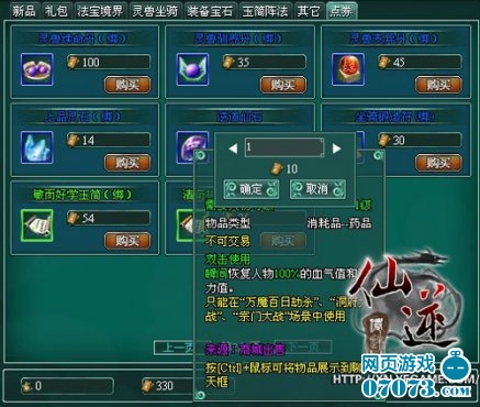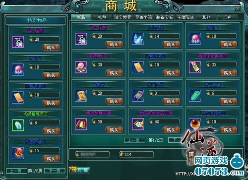 玩家可以使用仙幣和點券購買商城道具。其中,仙幣可以通過充值獲得,點券是在線時長累積和任務(wù)獲得。