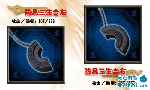 古代名匠采降天隕石中蘊(yùn)含的紫金之華,隕鐵之精,并融進(jìn)“三生之石”所鍛造成的防具,其身大氣磅礴,渾厚凝重,其一受創(chuàng),另一不論身處何方,都有感應(yīng)。強(qiáng)橫無匹的氣勢(shì)天下無雙。