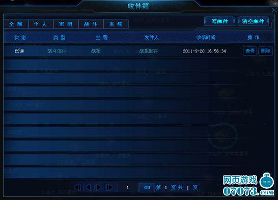 發(fā)送郵件分為兩類:個(gè)人郵件、軍團(tuán)郵件。