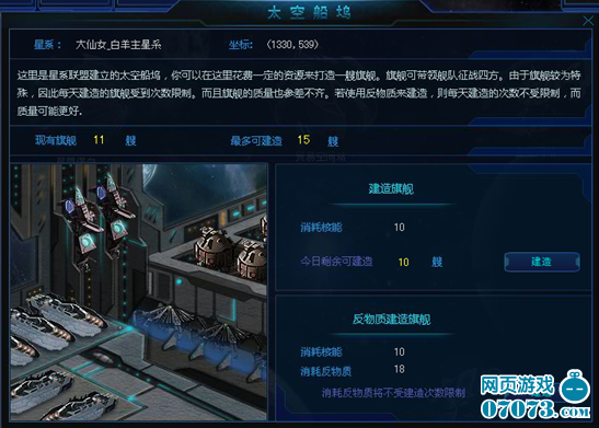 玩家每天建造10艘旗艦,可保留,也可放棄,到達(dá)數(shù)量上限后可使用反物質(zhì)來無限建造。