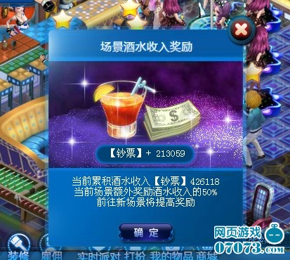 場景收入計算方法是跟大家的酒水收入掛鉤的,你點擊場景收入的時候,當時顧客們消費了多少酒水,就按照那個酒水的總消費量的百分之三十計算。就是說,如果你當天賣酒水獲得了99W,那場景收入就能額外的給你增加33W。注意,是跟酒水掛鉤哦,而不是跟小費掛鉤