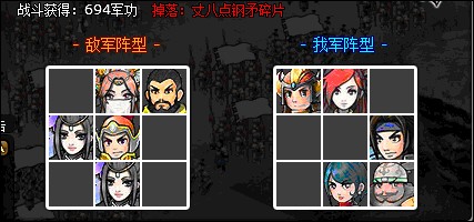 (雖然我的主將是仙術(shù)師,但是我已經(jīng)很久沒讓主角出戰(zhàn)了,我全是些物理系的武將,所以這個(gè)陣型很少用,即使用也是和云龍陣相同的用法,用來對抗上方和下方都是2個(gè)武將的陣型,所以實(shí)戰(zhàn)案例就不放出來了,大家可以參考云龍陣的實(shí)戰(zhàn)案例)
