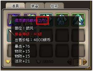 紫裝侯雙披風(fēng)需要5個碎片,集成5個系統(tǒng)自動合成。