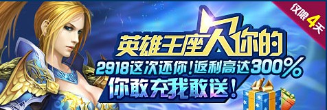 英雄王座欠你的,2918這次還你!返利高達(dá)300%!你敢沖我敢送!