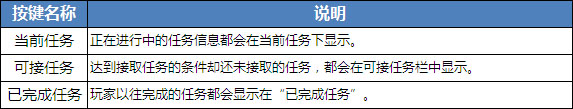 任務(wù):任務(wù)是游戲中玩家升級(jí)和了解《中華客棧》故事劇情必不可少的一部分。任務(wù)界面分別為(當(dāng)前任務(wù)、可接任務(wù)、已完成任務(wù))。九、任務(wù)界面介紹: