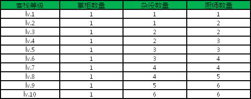1.4、員工的品級決定員工成長率,成長率越高的員工通過培訓獲得的經(jīng)驗越多,提升的能力也越強,能給客棧帶來更高的收益