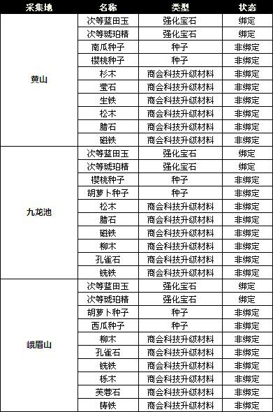 4、不同的采集地點(diǎn),會(huì)采集出不同級(jí)別的道具與材料