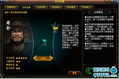 收集足夠數(shù)量的名將魂魄,可以到武將招募使這里重新將其兌換出來。
