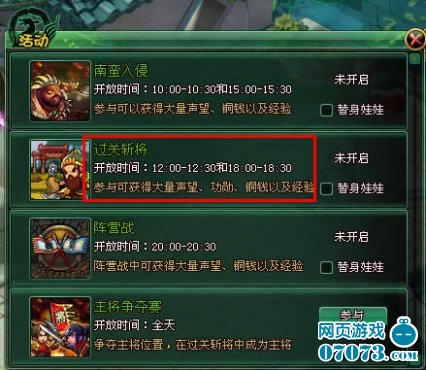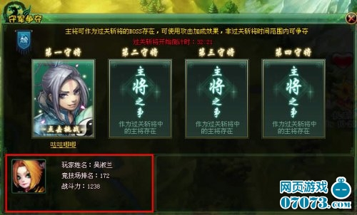 可以注意到在主將爭奪賽的界面上方會有一行活動信息提示“主將可以作為過關(guān)斬將的BOSS存在,可使用攻擊加成效果,非過關(guān)斬將活動時間內(nèi)可爭奪主將位置。”沒錯,通過主將爭奪戰(zhàn)的守將位置搶占,系統(tǒng)會根據(jù)守將的排名安排四名守將玩家作為該陣營的BOSS在另外一個活動“過關(guān)斬將”存在。