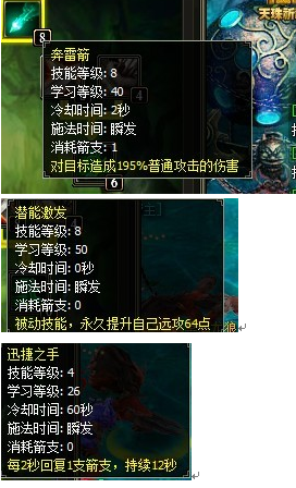 獵人主攻有4個“奔雷箭 荊棘箭 八箭誅方纏影箭”,但是“荊棘箭”就不需要使用了,它本來就沒有什么用