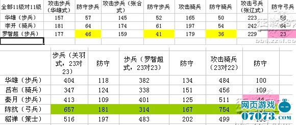 第一幅標(biāo)了紅色的是羅智超對弓兵的防守,那是超強(qiáng)的;第二幅圖是秦月對騎兵的防守,也是無敵的。這兩個(gè)將在系統(tǒng)說明中有明確規(guī)定,一個(gè)克弓兵,一個(gè)克騎兵!!!還有后面的典韋,是克策士的。后面還一個(gè)周瑜,專門攻擊步兵。